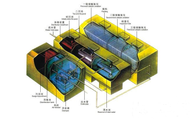 2、二級生物接觸氧化MBR處理工藝,保證出水穩(wěn)定性。采用A/O二級生物接觸氧化MBR處理工藝,系統(tǒng)均采用鼓風(fēng)曝氣,活性污泥的體積小,對水質(zhì)的適應(yīng)性好,出水水質(zhì)穩(wěn)定,不會產(chǎn)生污泥膨脹。
