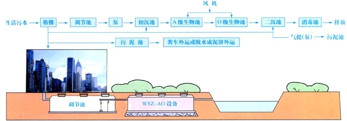 集裝箱式、地埋式生活污水處理裝置工藝流程圖